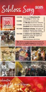 Haben Sie Interesse als Aussteller an unserem beliebten Weihnachtsmarkt teilzunehmen, dann schicken Sie uns bitte eine Email an: info@schloss-sorg.com